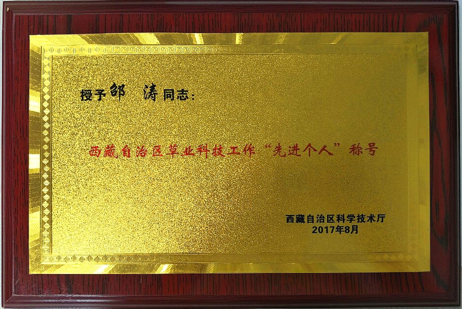 据悉,邵涛教授自2008年以来带领科研团队扎根西藏,依托西藏高原草业工程技术研究中心作为合作平台,走遍了西藏四市三区,足迹遍布西藏各个农、牧区。他以务实的科研态度带领研究团队保质保量地完成了各项科研任务,并于2013年和2015年两次获得西藏自治区科学技术进步奖一等奖。他将研究成果在日喀则、山南、拉萨等地区进行了推广,建立了 22 个中心示范基地。在不同地区举办不同类型、规模技术培训班 86 期,受训人员1.5 万人次;亲自指导农户和企业进行农作物秸秆混合青贮饲料生产,使科研成果在生产中迅速转化,实现了成果的产业化生产;用实际行动诠释了“特别能吃苦、特别能战斗、特别能忍耐、特别能团结、特别能奉献”的老西藏精神。