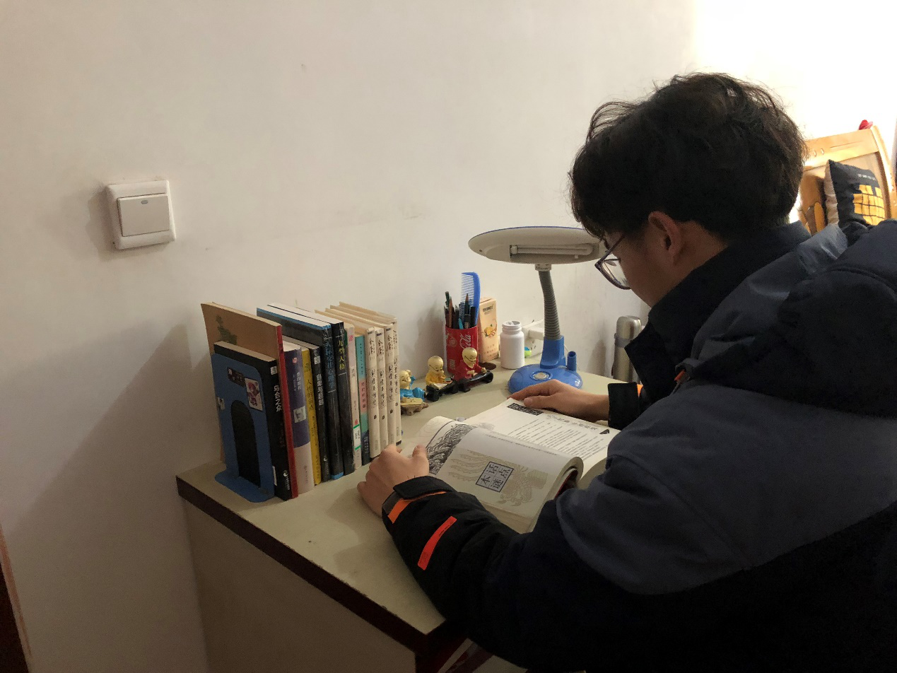 下午两点预备党员伏秀珍上岗值班。为最大限度切断疫情传播链,做到疫情防控,村里实行了“封村”措施,发起志愿者执勤活动,她第一个报了名。她的任务是在村口登记来往人员信息,谢绝外来车辆入村,开展疫情防控宣传,提醒大家出门戴口罩、不串门、不聚集,劝导不要走亲访友。作为一名学生党员,虽然不能像医护人员和人民子弟兵这些最美“逆行者”一样战斗在疫情最严重的地方,但她能帮助身边的人,为防控疫情做出自己的贡献。此时党员钟友辉打开书本。虽然已经保研到了厦门大学,他一刻也没有停下学习的脚步,为了弥补英语方面的不足,提升英语词汇量和阅读能力,这个寒假,他为自己制定了详细的学习计划。