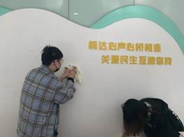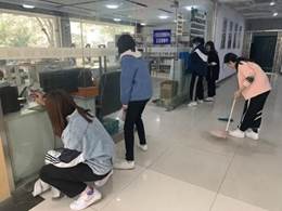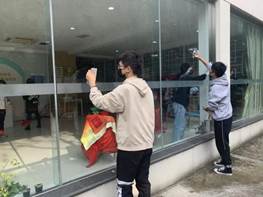 在开展讲座的同时,志愿者们还进行了社区的大扫除活动。在工作人员的指导下,志愿者们擦玻璃、扫地、拖地,尽管天气寒冷,他们也认真负责地完成了自己的工作,在志愿者们的努力下,社区服务站最终变得更加干净美丽。