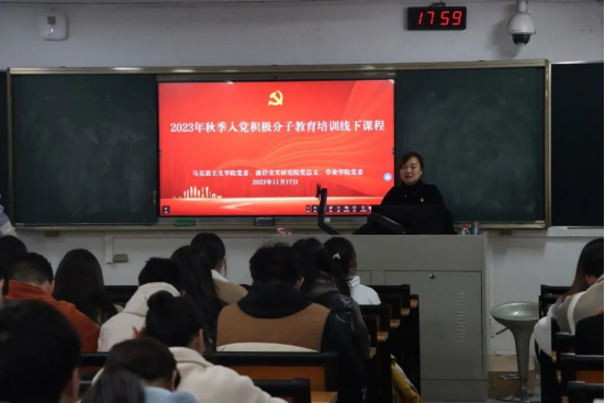 2023年11月17日下午,三院联合开展的“新农人的使命”党建班主题培训在教学楼A206举办,本次课程由马克思主义学院党委、加拿大28