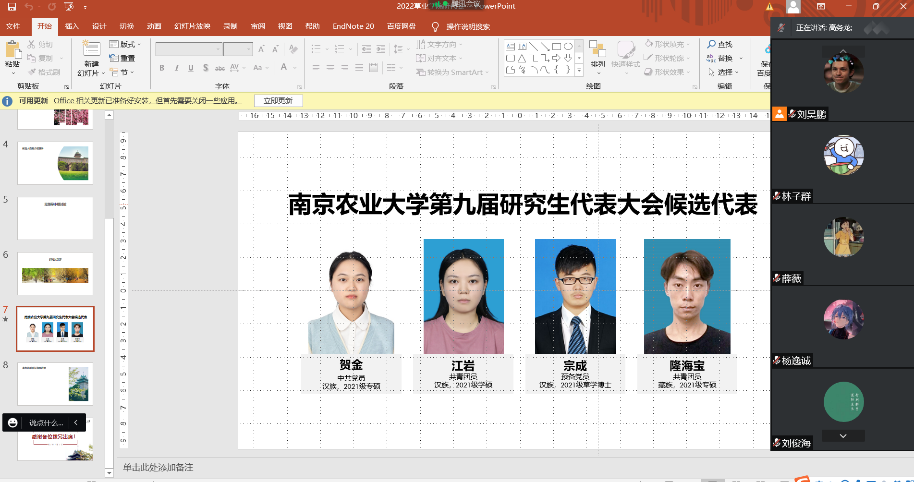 第八届研究生会主席团成员,选举江岩、隆海宝、贺金3名研究生作为学院研究生代表参加南京农业大学第九次研究生代表大会。